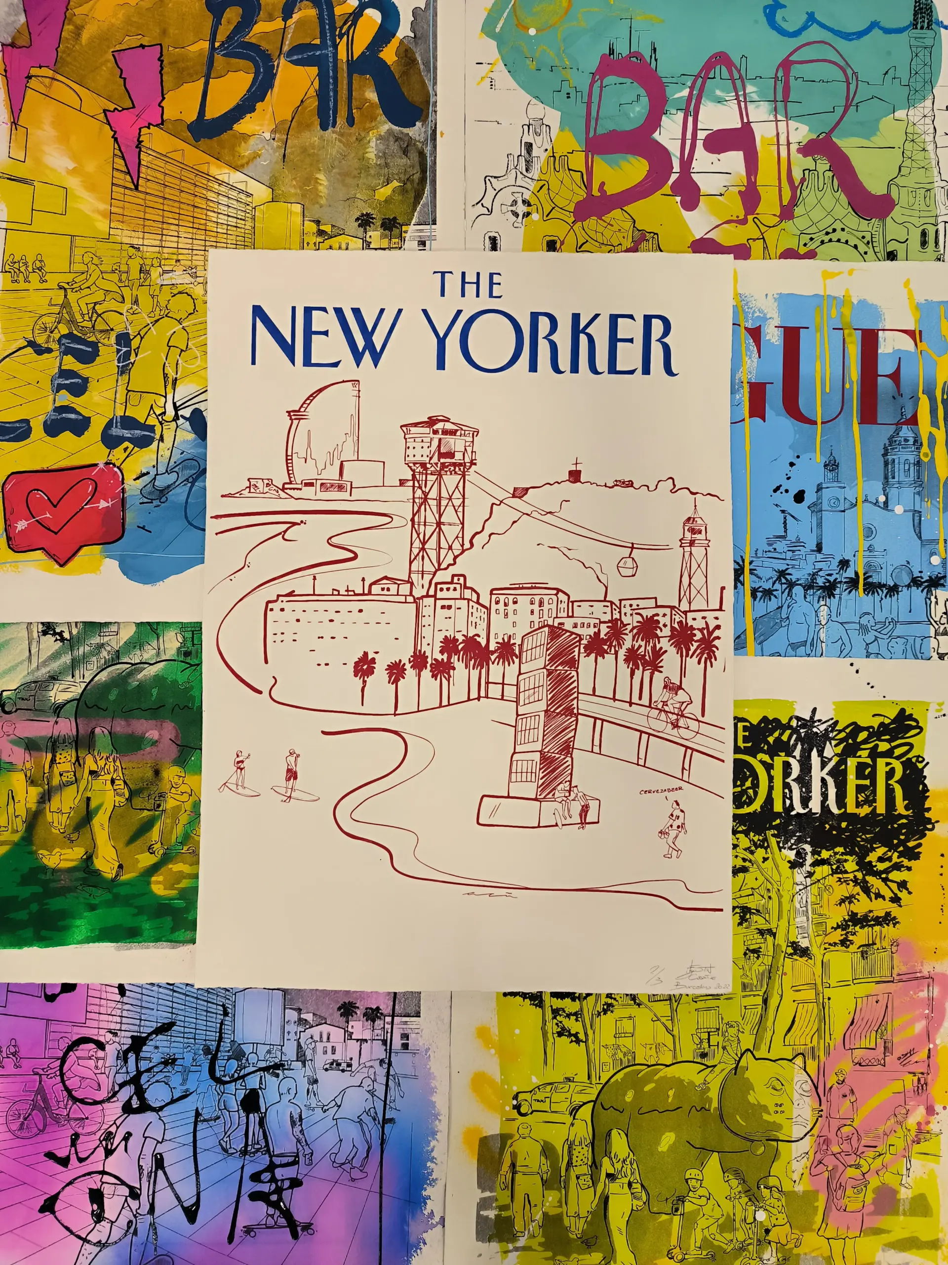 Playa de la Barceloneta – Arte Urbano Contemporáneo Barcelona – Retrato Print (original painting on paper)